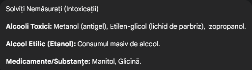 • Acest rezultat sugerează o intoxicație cu un solvent nemăsurat (ex. metanol).