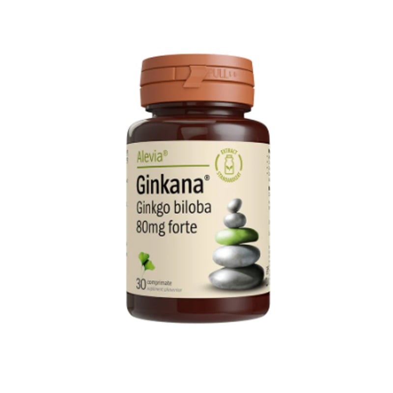 Cumpara „Alevia GINKANA Ginkgo Biloba 80mg forte, 30 comprimate” – Vitamine si suplimente > Neuro > Activitate cerebrala.