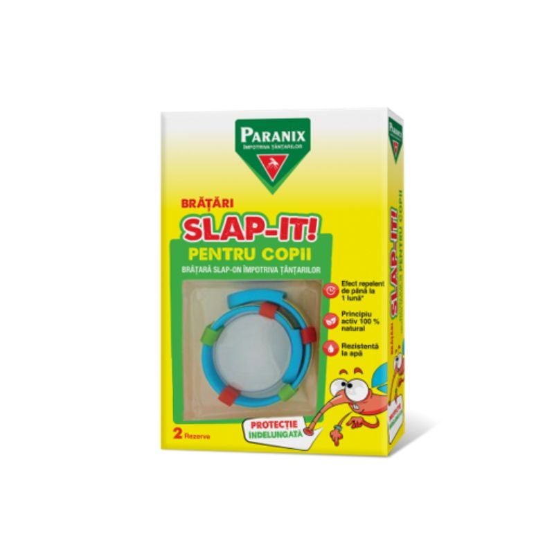 Bratara ce ofera protectie impotriva tantarilor pentru cei mai mici membri din familie, intr-o modalitate, distractiva, fara a intra in contact direct cu igredientul activ si de lunga durata (1 luna). Cei mai mici membri din familie au nevoie de o protectie delicata. Bratara „”Slap on”” este o modalitate lipsita de complicatii, distractiva si de lunga durata, de a va proteja copiii de muscaturi.
