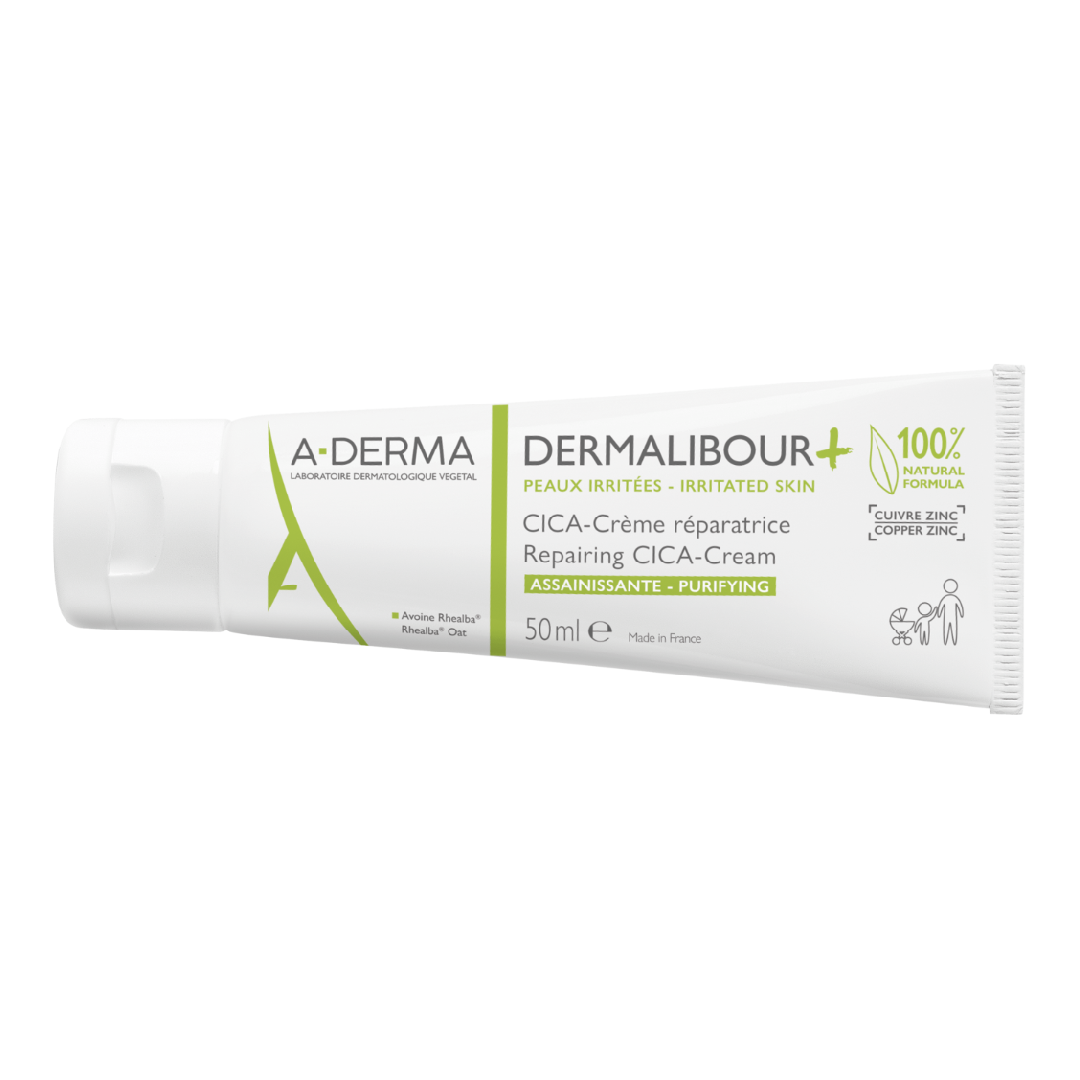 A-Derma DERMALIBOUR+ Cica Crema reparatoare vine in ajutorul pielii iritate a intregii familii, inca de la nastere. Formula sa, cu tolerabilitate ridicata, este perfect adaptata pentru pielea iritata a fetei, corpului, pleoapelor si zonelor intime externe ale nou-nascutilor, copiilor si adultilor.