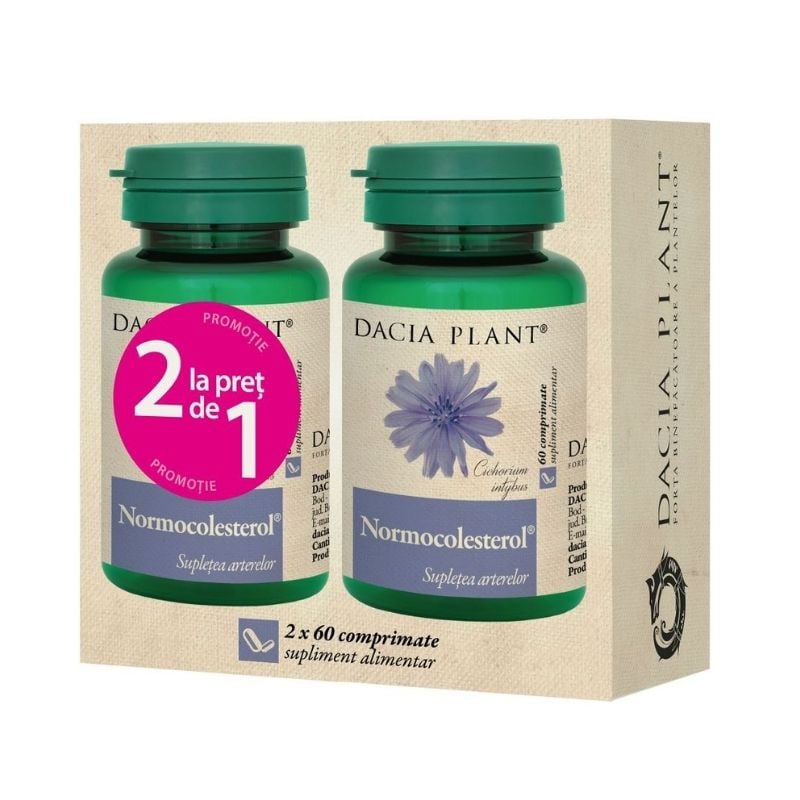 Cumpara DACIA PLANT Normocolesterol, 60 comprimate 1+1 cadou – Vitamine si suplimente > Vitamine si suplimente > Gastro > Scaderea colesterolului > Vitamine si suplimente > Pachete promotionale suplimente, la un pret special.