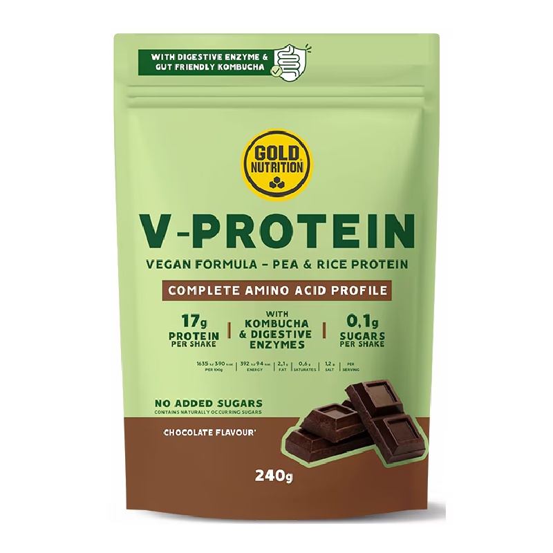 Cumpara „Gold Nutrition Pudra Proteica Vegetala V-protein Ciocolata, 240 g” – Vitamine si suplimente > Vitamine si suplimente > Suplimente pentru sportivi > Vitamine si suplimente > Suplimente pentru sportivi > Pudre proteice (proteine).
