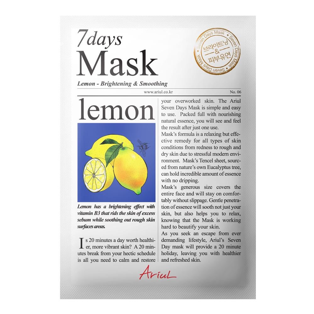 Cel mai popular produs marca Ariul, Ariul 7Days Mask, in varianta cu Lamaie, contine niacinamide, pentru a lumina tenul obosit si pentru a controla productia de sebum pentru o piele mai stralucitoare si purificata.