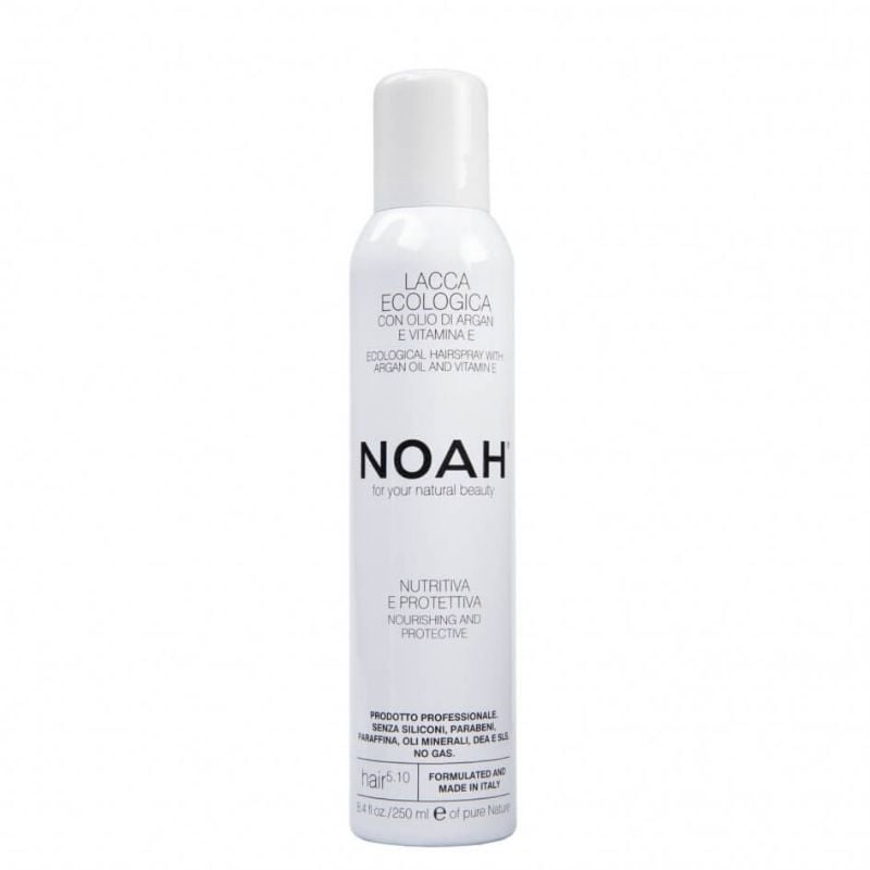 NOAH, brand certificat ECOCERT, este o linie naturala de produse cosmetice fabricate in Italia, destinate ingrijirii parului, avand ca fundament premisele sustenabilitatii, experienta consumatorilor si armonia. La baza produselor NOAH sta conectarea simturilor si bunastarea generala, imbinate cu ingrijirea parului si scalpului.Spray fixativ ecologic cu Vitamina E (5.10), Noah. Spray de par profesional cu fixare puternica, ideal pentru orice coafura.Creeaza un film protectiv si stralucitor care inconjoara firul de par si il protejeaza de umiditate si efectul de ondulare, fara a-l face greu.