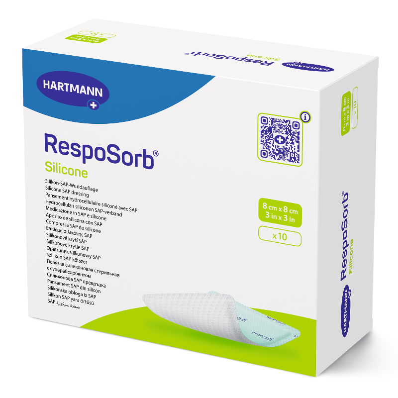 RespoSorb Silicone este un pansament pentru tratamentul rănilor cu exudare moderată până la puternică, acute și cronice. Stratul de silicon in contact cu rana permite aplicarea usoara si indepartarea aproape nedureroasa, atraumatica. Tamponul absorbant absoarbe și reține exudatul.