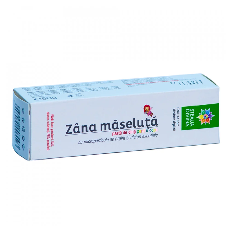 ZANA MASELUTA – pasta de dinti pentru copii.Contine 100% ingrediente naturale si este excelenta pentru prevenirea aparitiei cariilor si pentry mentinerea echilibrului natural al florei din cavitatea bucala.