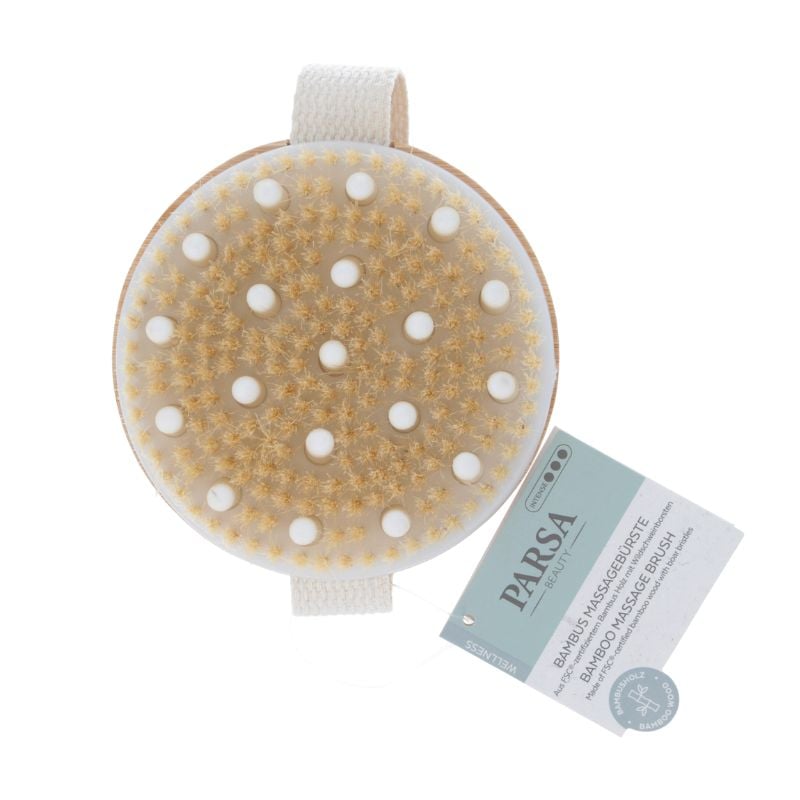 Perie de masaj Parsa este realizata din bambus certificat FSC® completeaza perfect rutina zilnica de ingrijire a pielii. Perii cauciucati sunt combinati cu perii mistretilor pentru a-ti oferi un masaj confortabil. Pernutele de masaj dispuse circular sunt ideale pentru tratamentul anticelulitic.