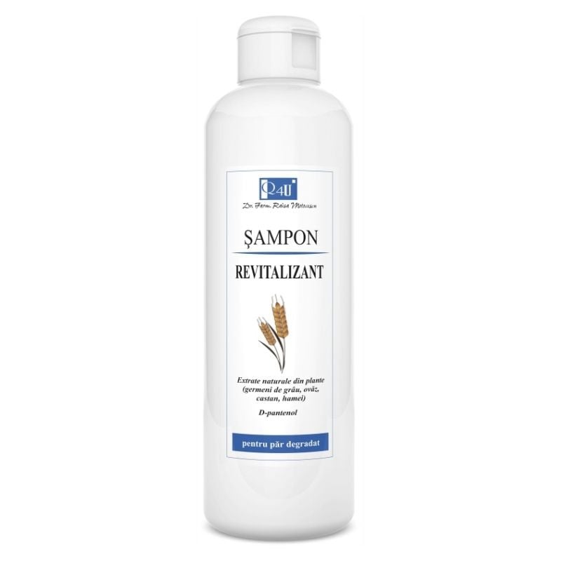 Beneficii TIS Q4U Sampon revitalizant:Samponul revitalizant stimulează și regenerează rădăcina firului de păr; utilizarea sa produce hidratarea îndelungată a firului de păr și previne degradarea acestuia.Se poate utiliza frecvent deoarece nu conduce la uscarea părului (nu conține sare); are în compoziție agenți tensioactivi puțin agresivi (amfoteri sau neionogeni) și, în concentrații reduse, agenți tensioactivi anionîci.Nu determină seboree, “nu încarcă părul”.Pentru toate tipurile de păr!Ingrediente TIS Q4U Sampon revitalizant:Extracte naturale (scoarță de castan, germeni de grâu), D-pantenol (provitamina B5), alantoina.Extractul de germeni de grâu conține flavonoide, polifenoli și compuși proteici cu proprietăți revitalizante asupra firului de păr.Alantoina stimulează regenerarea celulelor, prezintă acțiune keratolitică și calmează iritațiile.Extractul din scoarța de castan prezintă acțiune antiinflamatoare, astringentă și vasoconstrictoare.D-pantenolul (provitamina B5) are efect hidratant și antiinflamator asupra pielii iritate.Mod de utilizare TIS Q4U Sampon revitalizant:Se aplică pe părul ud, se masează rădăcina firului de păr și se lasă în contact cu părul 3-5 minute până la pătrunderea completă a produsului.