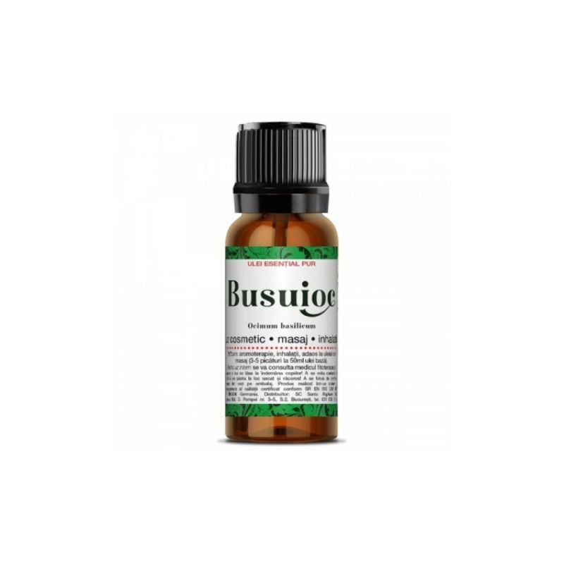 Uleiul esential de busuioc are numeroase beneficii pentru organism. Echilibreaza functiile organismului si contribuie la mentinerea si imbunatatirea starii de sanatate. Este considerat a fi o planta sacra, fiind folosit in ceremonii religioase din cele mai vechi timpuri. Aduce protectie, induce o stare de optimism si buna dispozitie.