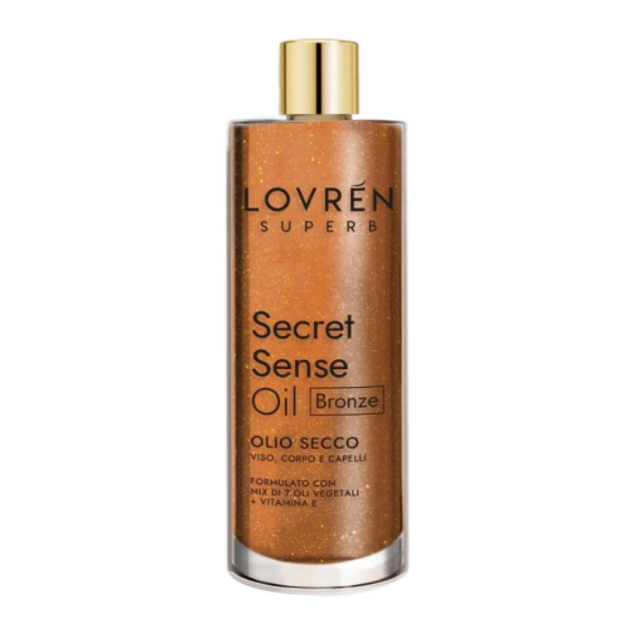 Uleiul Lovren Superb Secret Sense Oil Bronze, cu micro-particulele sale aurii, face imediat pielea mai luminoasa si hidrateaza fara a lasa pielea uleioasa. Este imbogatit cu un amestec de uleiuri vegetale pretioase de argan, migdale, jojoba, bumbac, orez, morcov si macadamia.