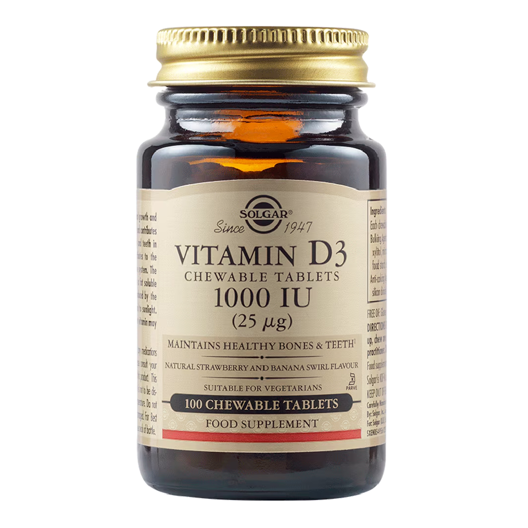 Cumpara Vitamina D3 1000 UI, 100 tablete masticabile, Solgar – Vitamine si suplimente > Vitamine si suplimente > Imunitate forte > Vitamine si suplimente > Vitamine si minerale > Vitamine si suplimente > Vitamine si minerale > Vitamina D, la un pret special.