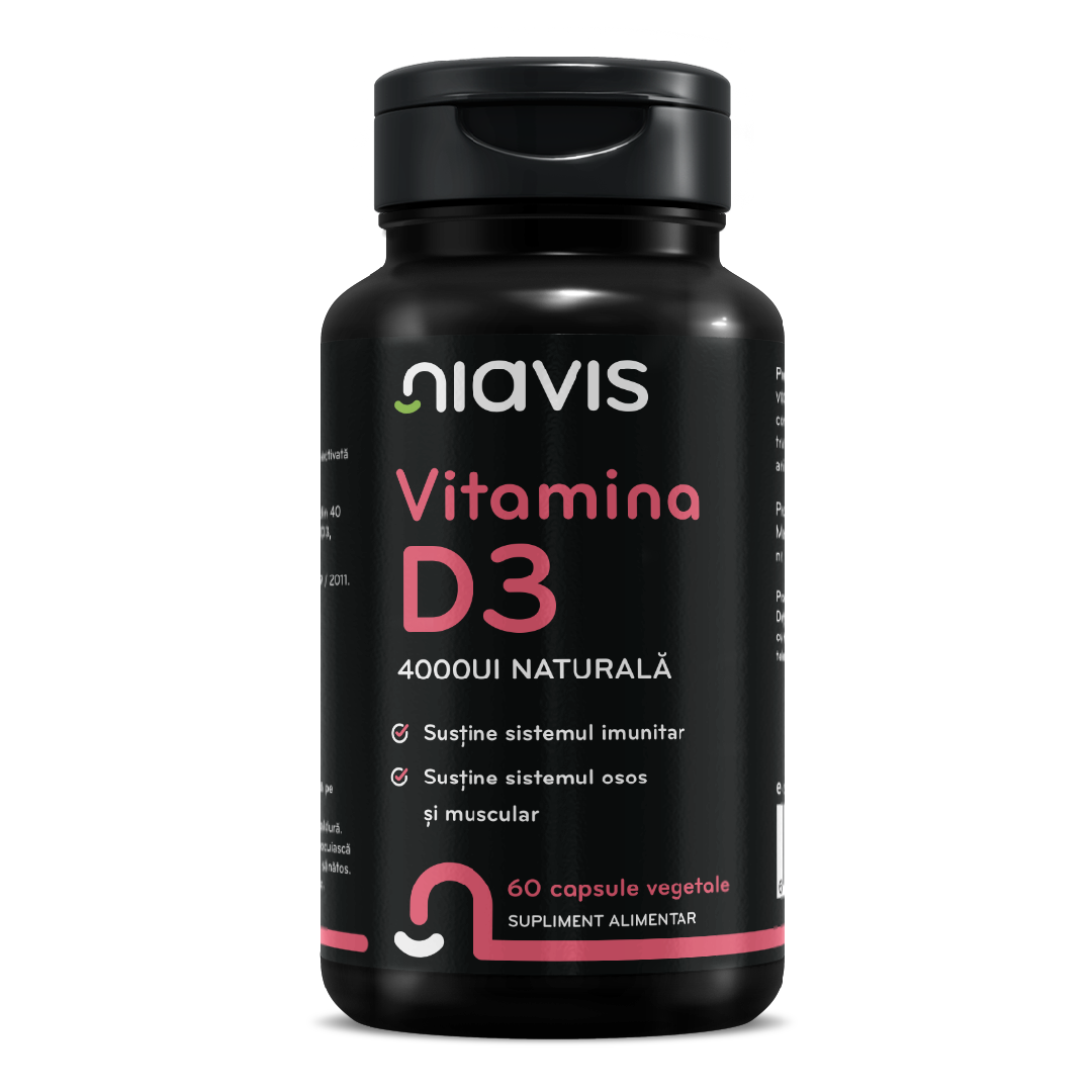 Cumpara „Vitamina D3 4000 Natural, 60 capsule, Niavis” – Vitamine si suplimente > Vitamine si suplimente > Vitamine si minerale > Vitamine si suplimente > Imunitate forte > Vitamine si suplimente > Articulatii > oase si muschi > Vitamine si suplimente > Vitamine si minerale > Vitamina D.