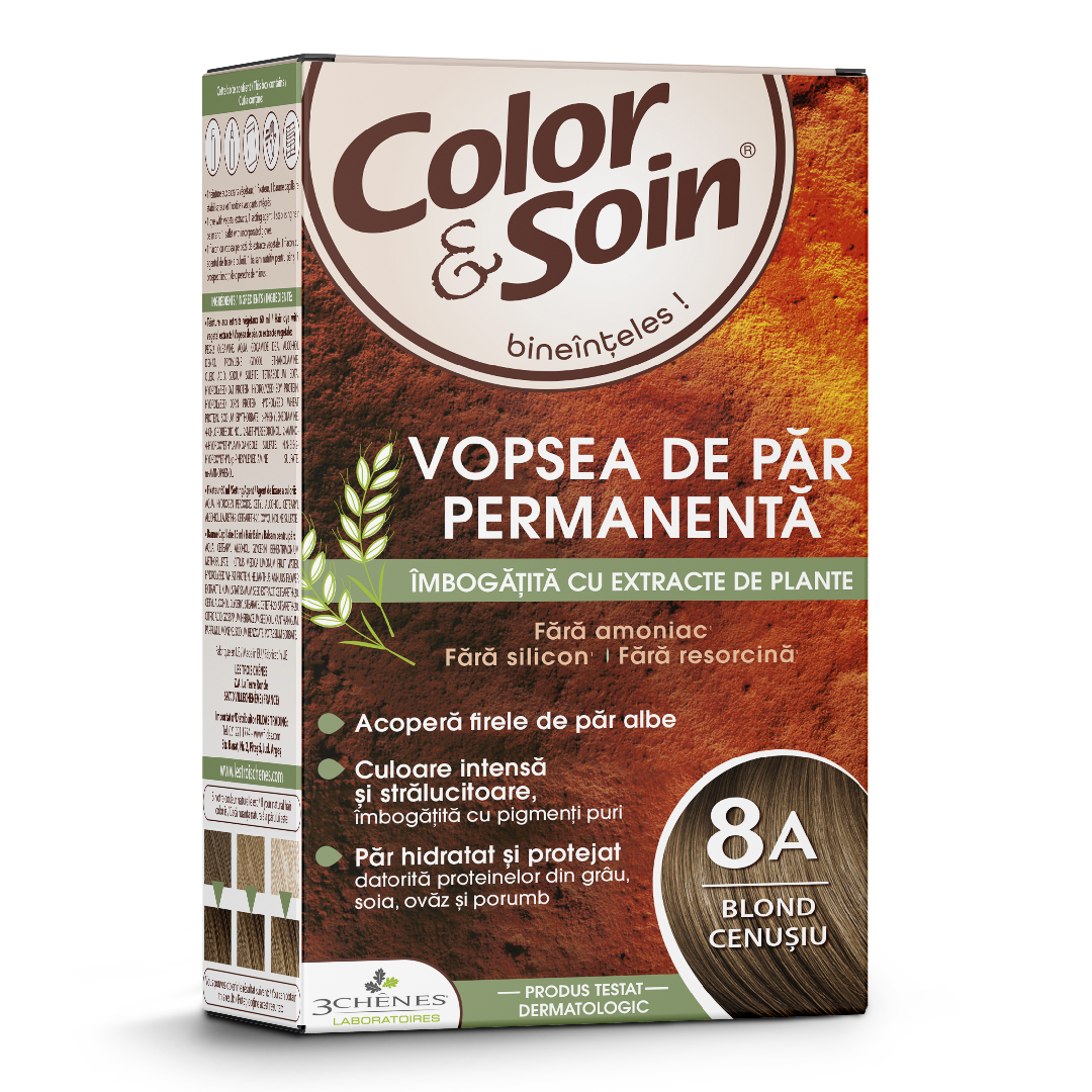 Descriere Vopsea de par fara amoniac, fara silicon, blond cenusiu, 8A, Color&Soin: