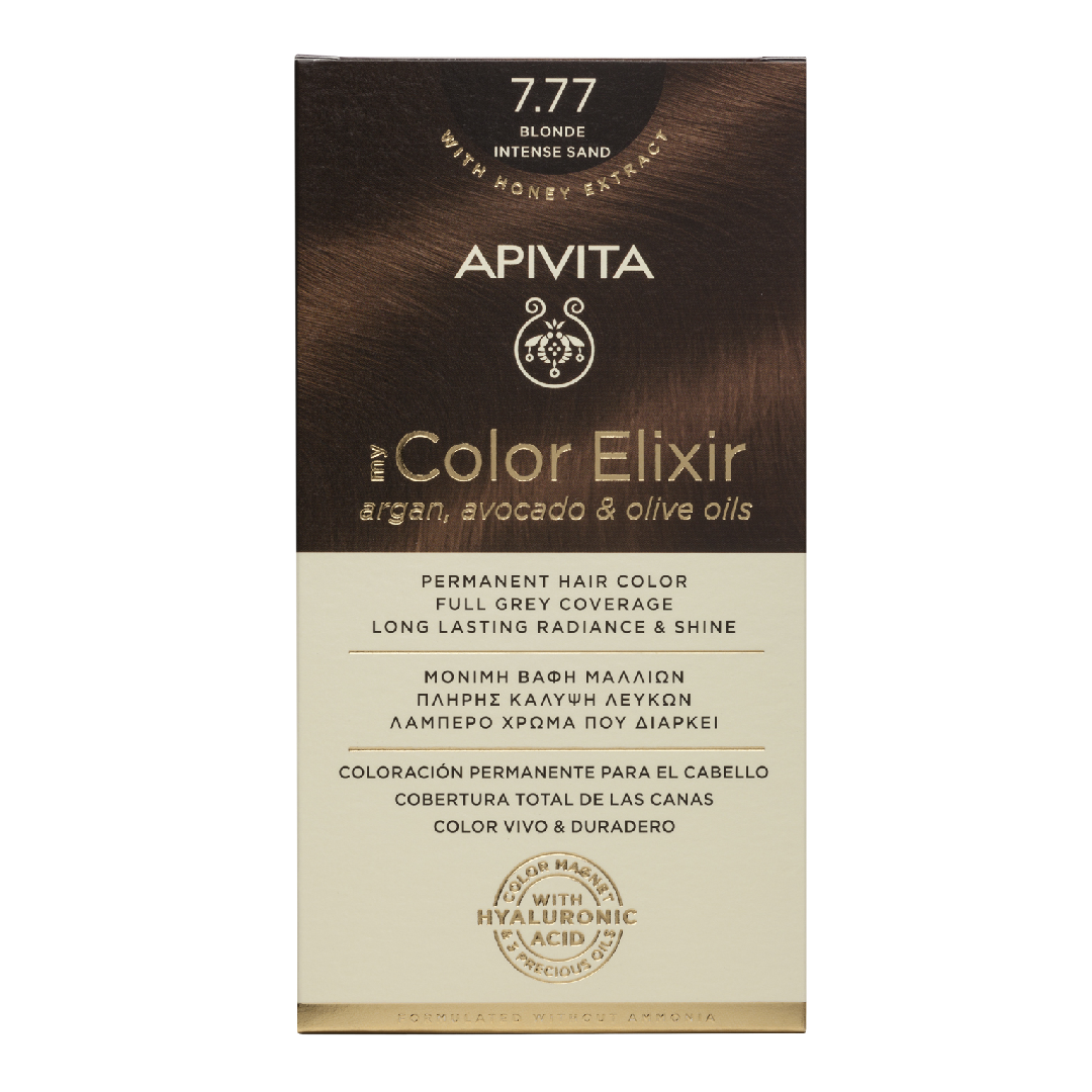 Cumpara Vopsea de par My Color Elixir Blonde Intense Sand 7.77, 155 ml, Apivita – Frumusete si ingrijire > Frumusete si ingrijire > Ingrijirea parului > Frumusete si ingrijire > Ingrijirea parului > Vopsea de par, la un pret special.