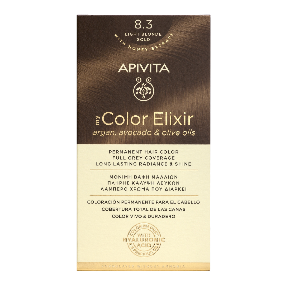 Cumpara Vopsea de par My Color Elixir, Light Blonde Gold N8.3, 155 ml, Apivita – Frumusete si ingrijire > Frumusete si ingrijire > Ingrijirea parului > Frumusete si ingrijire > Ingrijirea parului > Vopsea de par, la un pret special.