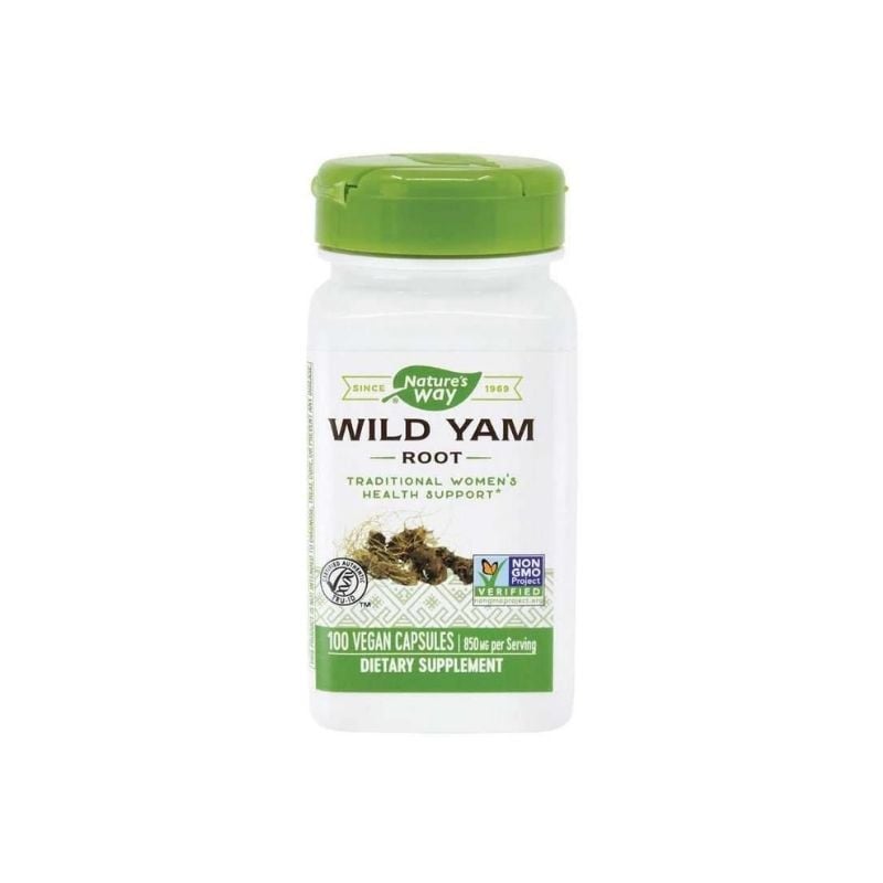 Supliment alimentar Wild Yam, Nature’s Way, 100 capsule vegetale, suport natural in reducerea disconfortului de la nivel uterin si digestiv.In medicina traditionala, extractul de Wild Yam este folosit pentru proprietatile sale antispastice si pentru sinteza progesteronului.Wild Yam nu prezinta activitate hormonala; din diosgenina se obtine progesteronul, prin reactii enzimatice care se desfasoara numai in conditii de laborator. Organismul uman nu poate sintetiza progesteronul sau alti hormoni steroizi activi din diosgenina.